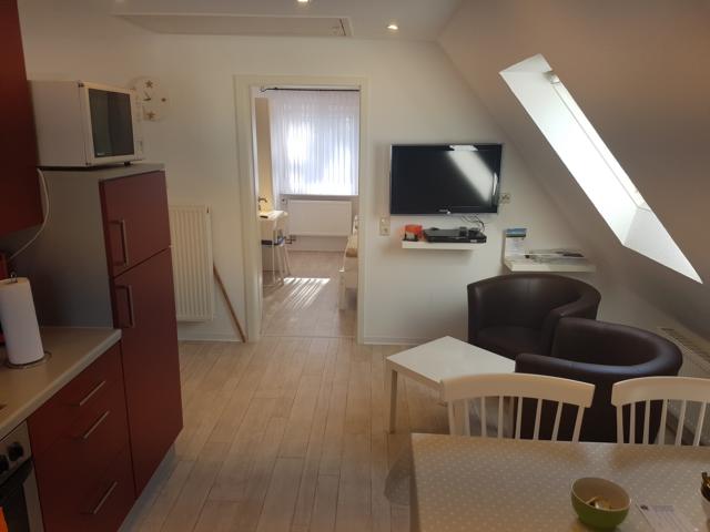 Die etwa 50 m² große Wohnung im 1. OG verfügt über eine moderne Wohn-/Essküche mit direktem Zugang zur eigenen Dachterrasse, 2 Schlafzimmer für je 2 Personen sowie ein geräumiges Badezimmer.
